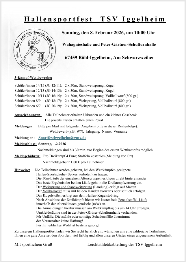 Auf dieser Seite findest Du alle wichtigen Termine zu den aktuellen Vereinsveranstaltungen des laufenden Jahres 2026, kalendarisch sortiert nach allgemeinen & sportlichen Ereignissen sowie verlinkt mit früheren Veranstaltungen, Ergebnislisten & Informationsflyern: