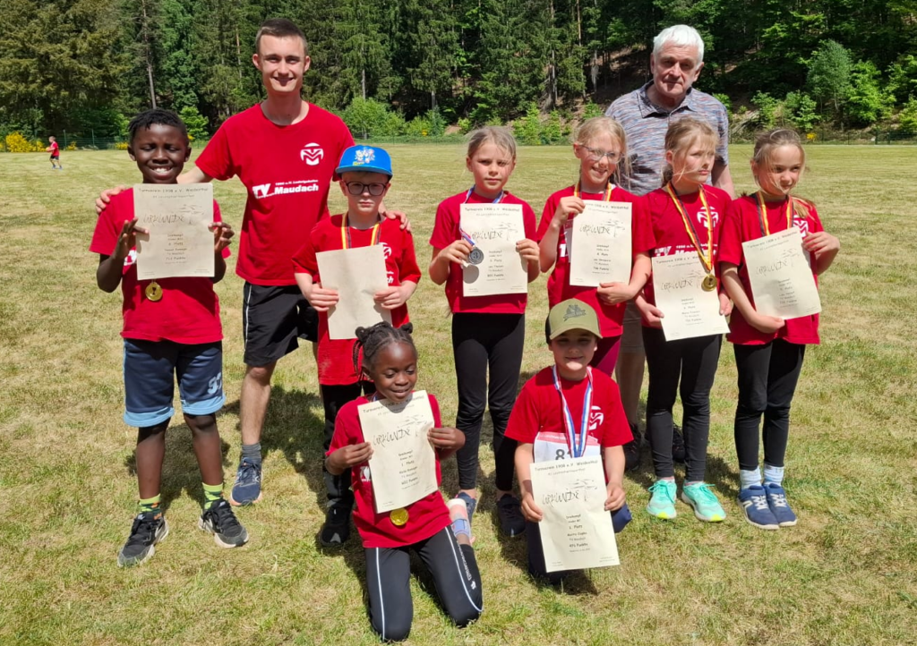 Bereits am Sonntag, den 18. Mai, nahm der TV Maudach erstmalig mit insgesamt 8 Athleten, darunter 5 Mädchen & 3 Jungen, am Leichtathletiksportfest im Erdbeertal in Weidenthal teil.