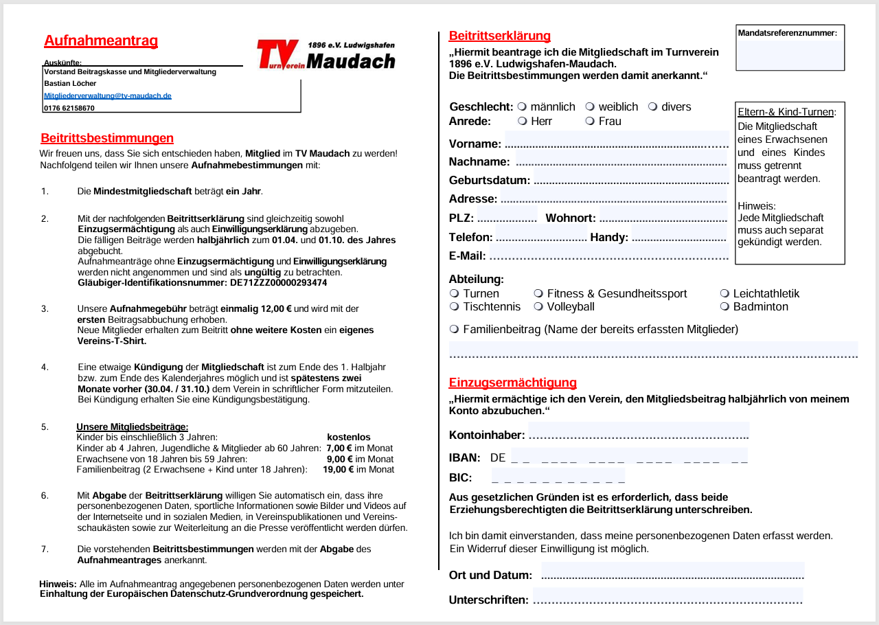 E-Mail: mitgliederverwaltung@tv-maudach.de - Mitgliedermeldung an: LSB RLP