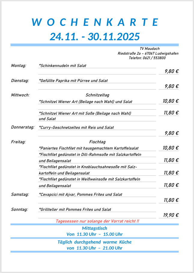 Speisekarte, Wochenkarte & Saisonkarte